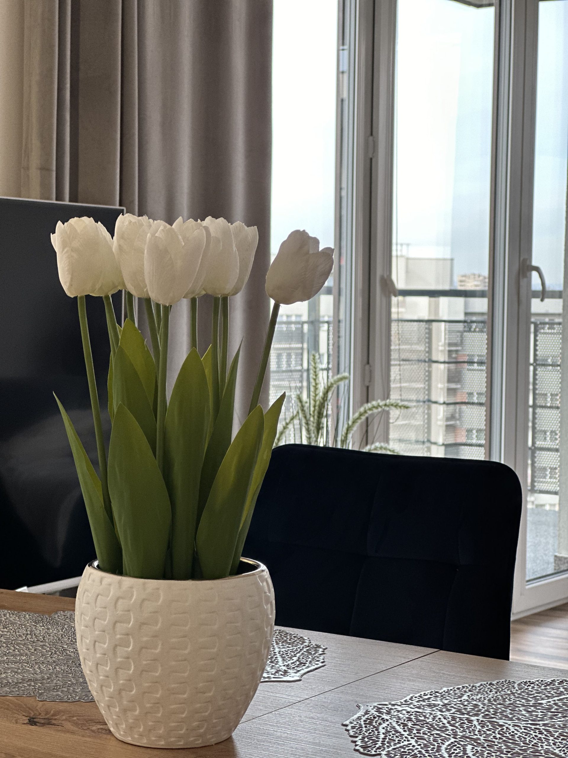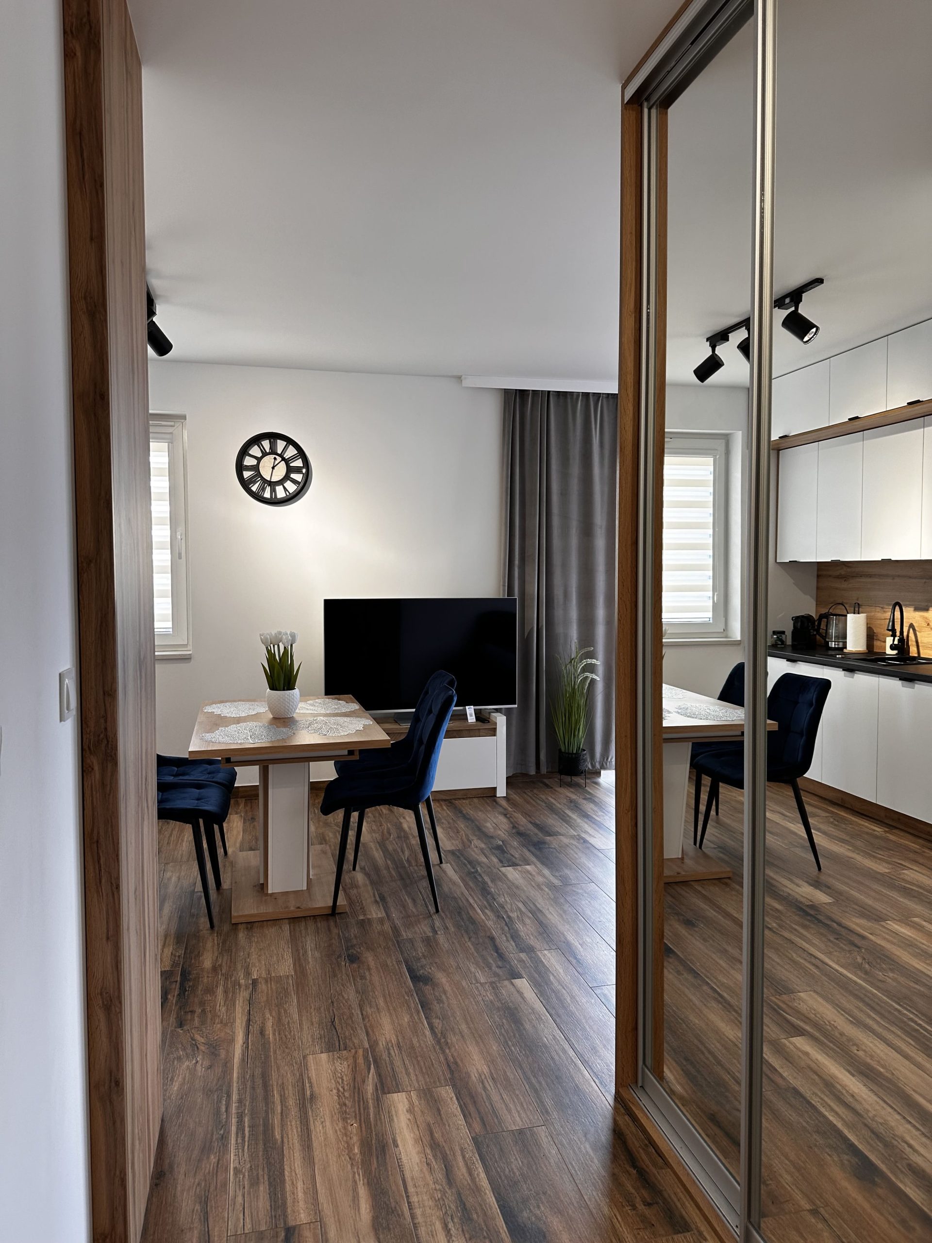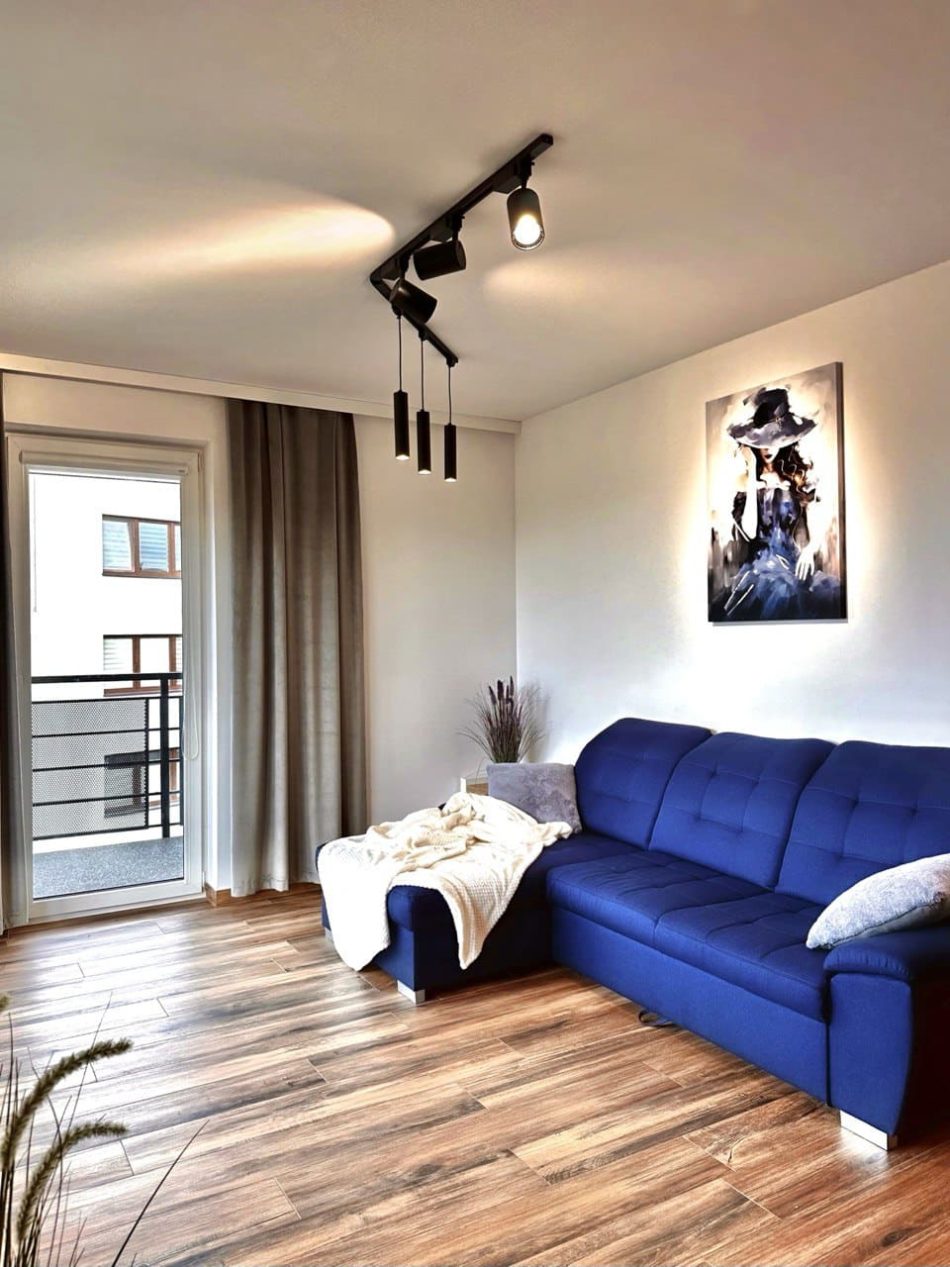 A refined 61 m² apartment that perfectly combines style and comfort. The first bedroom features a large double bed (160x200 cm), while the second bedroom offers two single beds (90x200 cm), ensuring a restful stay for all guests. A spacious living room with a sofa bed, two elegant bathrooms with a bathtub, and modern amenities—including air conditioning and a clothes dryer—enhance the experience. The large balcony is the perfect place to enjoy a morning coffee with a city view.