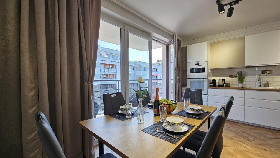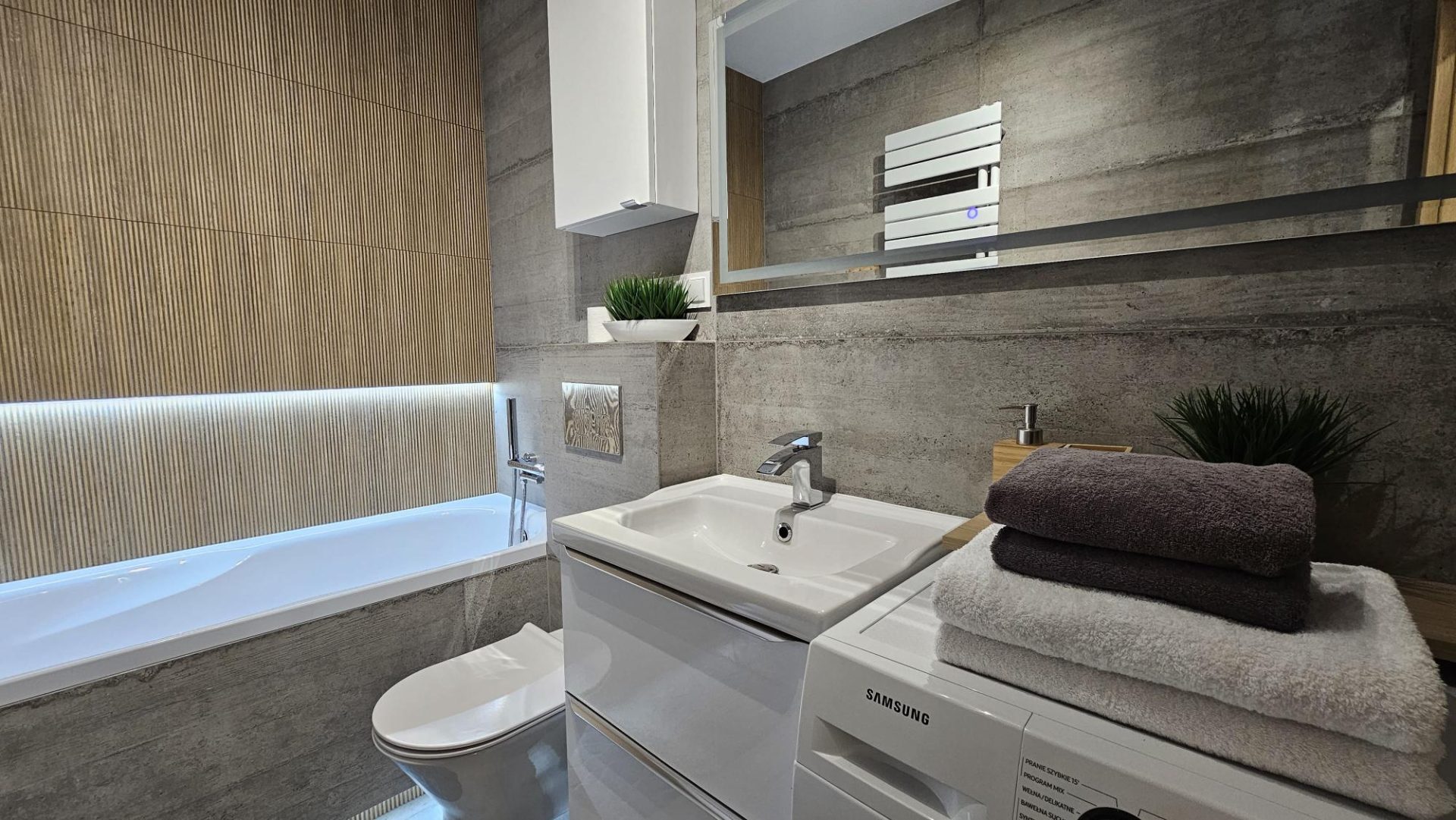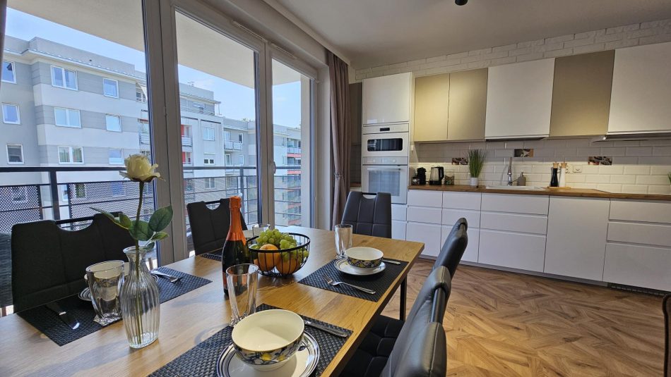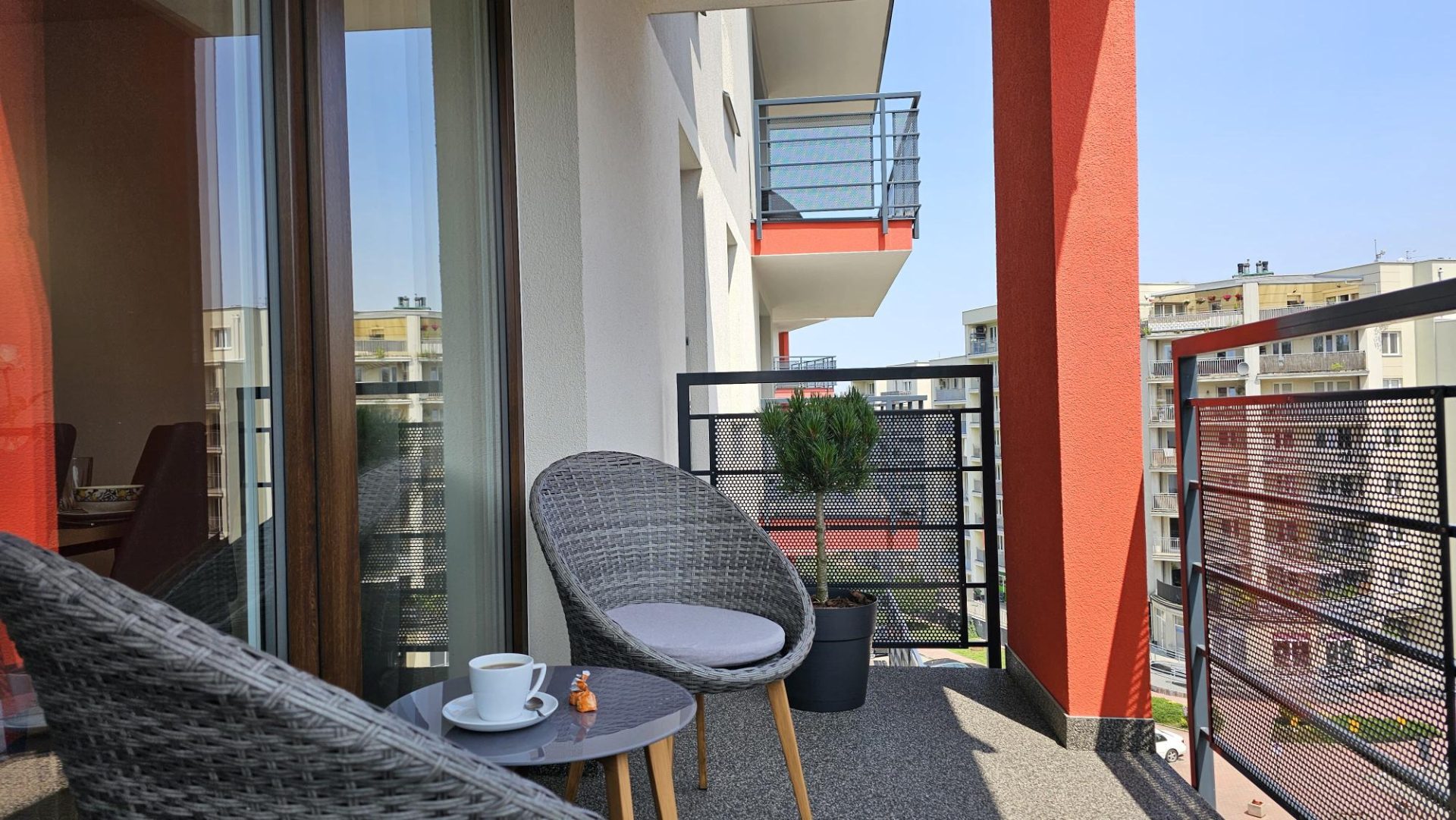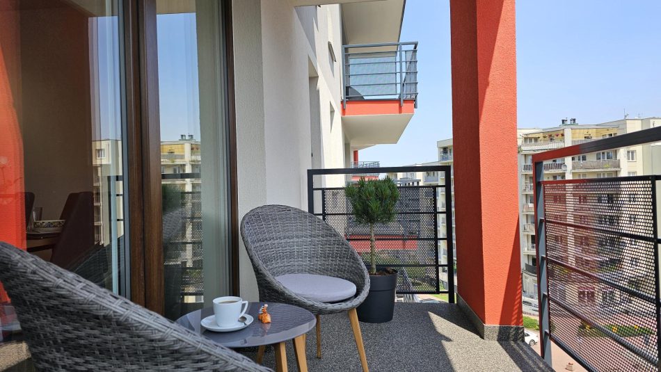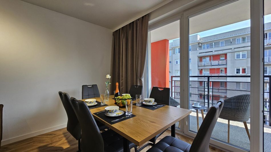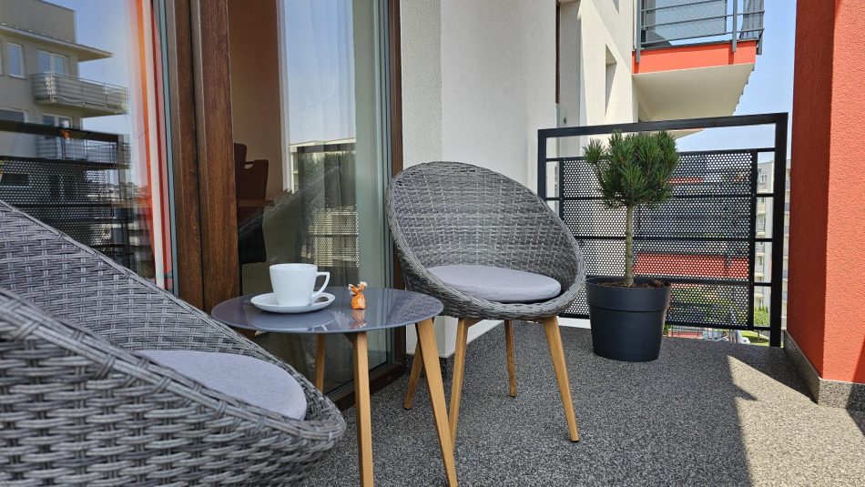This spacious 69 m² apartment is the perfect choice for families and larger groups. The first bedroom features a large double bed (160x200 cm), while the second bedroom has three single beds (90x200 cm). The living room includes an additional sofa bed, providing even more space for relaxation. Two bathrooms—one with a shower and the other with a bathtub—ensure maximum comfort for all guests. A large balcony, air conditioning, and modern amenities make this apartment an ideal place to unwind after a day full of sightseeing.