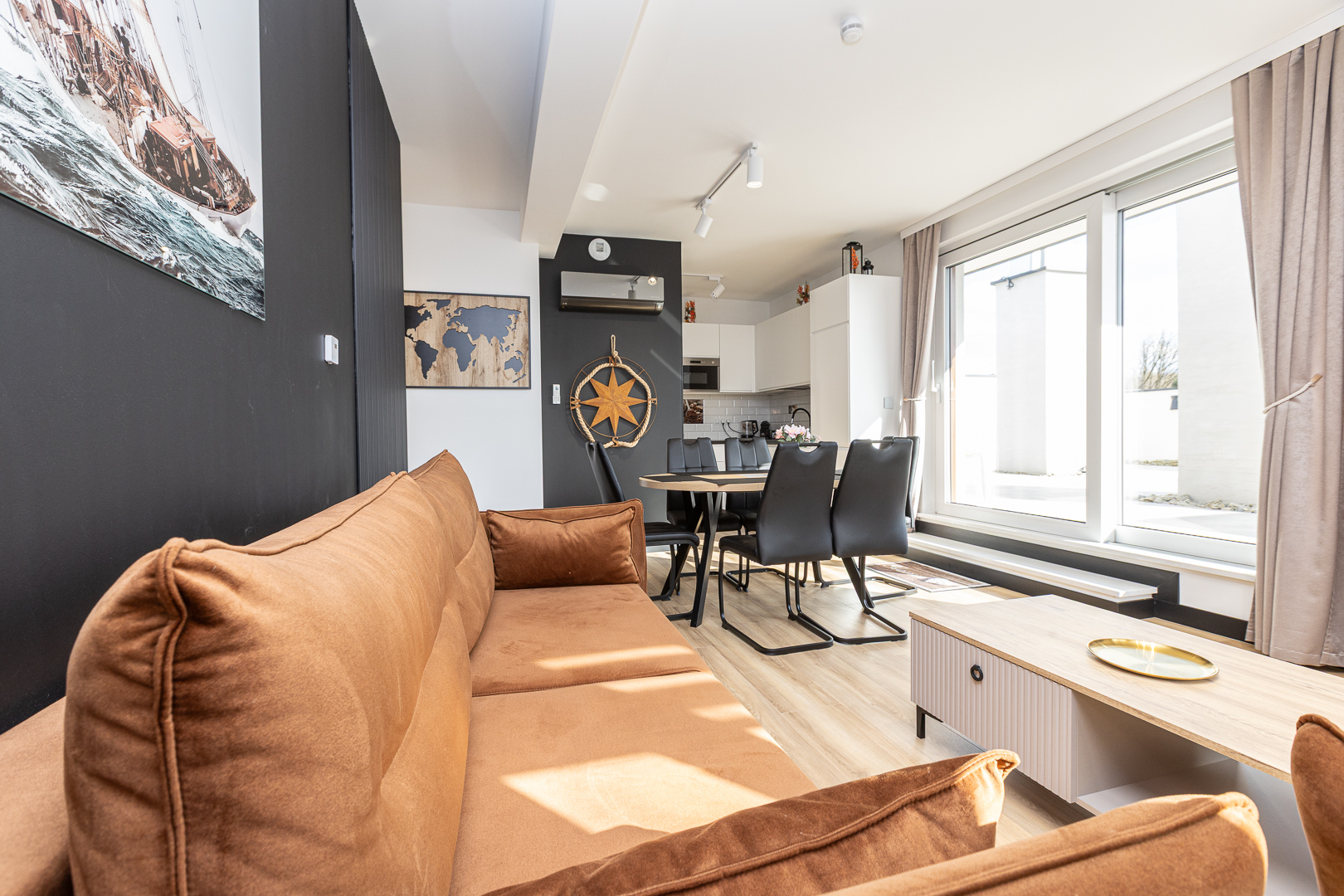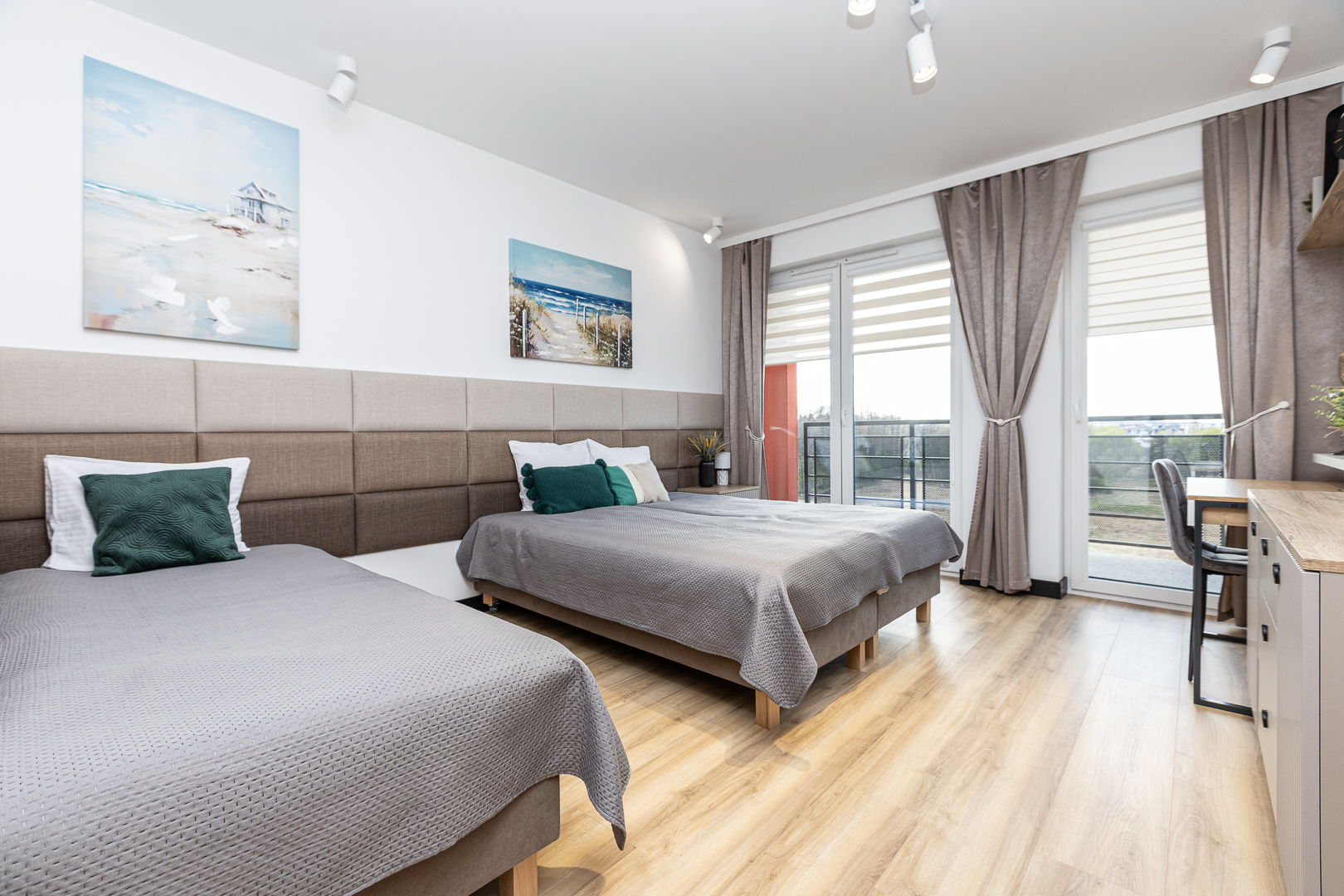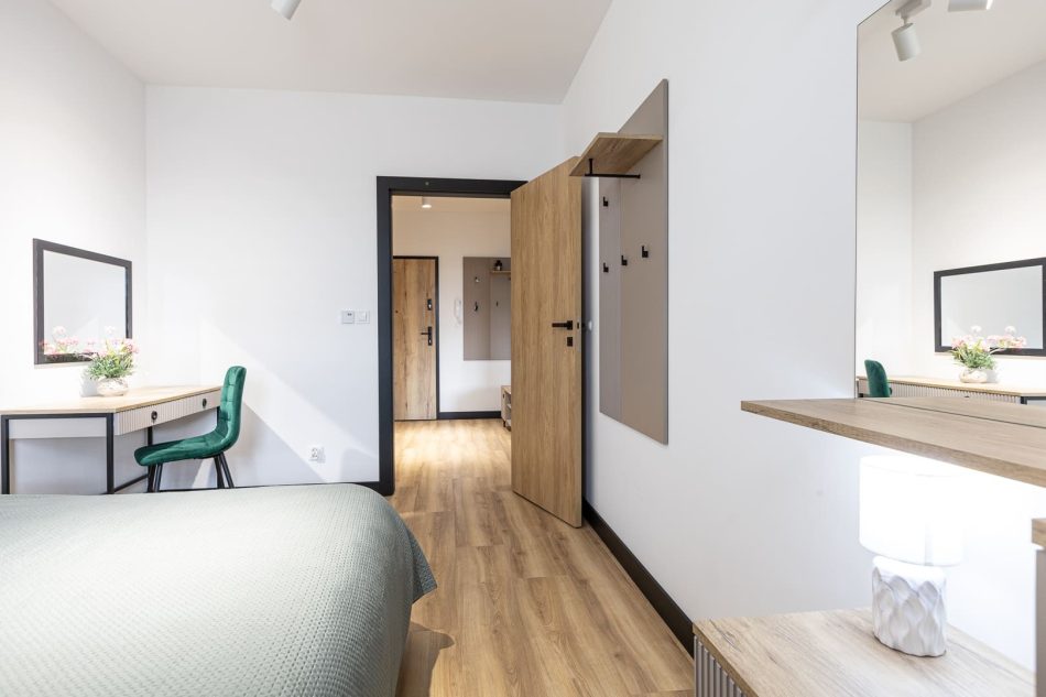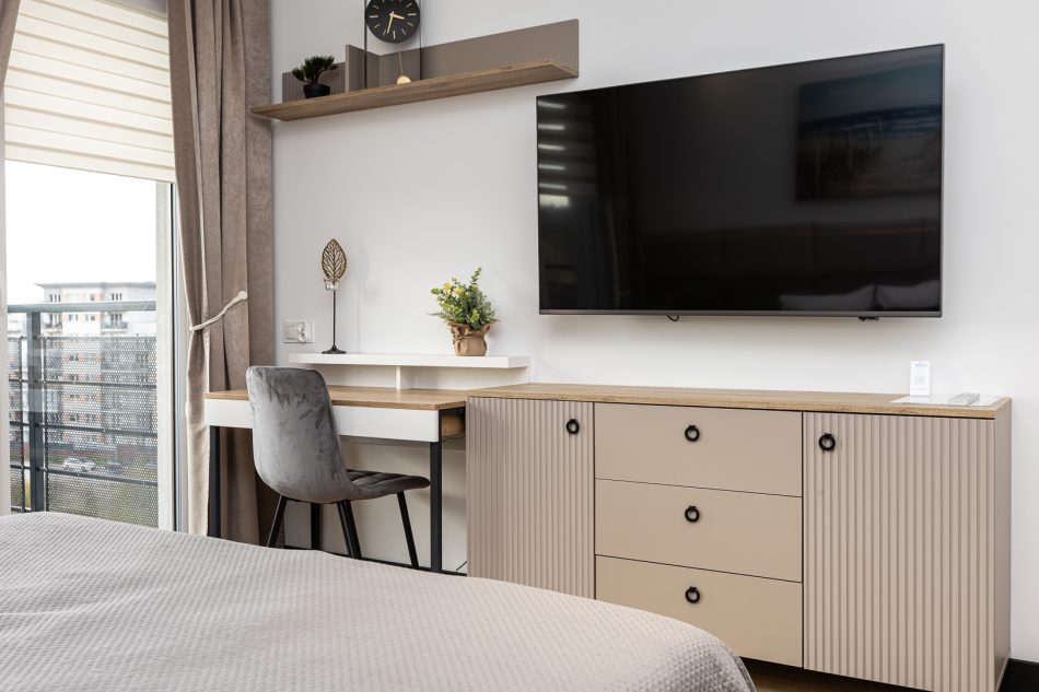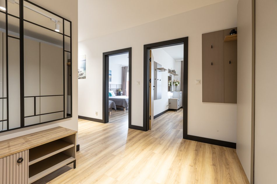 This exclusive 75 m² apartment combines spaciousness with elegance. The first bedroom features a large double bed (160x200 cm), while the second bedroom includes three single beds (90x200 cm). A comfortable living room with a sofa bed makes this an excellent option for larger groups. Two spacious bathrooms and modern amenities, including air conditioning, a clothes dryer, and a coffee machine, ensure a comfortable stay. The highlight of the apartment is the large terrace, perfect for enjoying moments of relaxation in the fresh air.