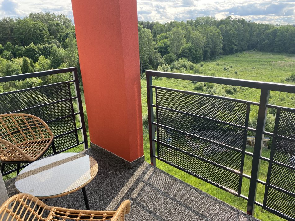Ekskluzywny apartament o powierzchni 75 m², w którym przestronność łączy się z elegancją. Pierwsza sypialnia z dużym łóżkiem podwójnym (160x200 cm), druga z trzema pojedynczymi łóżkami (90x200 cm) oraz wygodny salon z rozkładaną sofą sprawiają, że jest to doskonała opcja dla większych grup. Dwie przestronne łazienki, a także nowoczesne wyposażenie, w tym klimatyzacja, suszarka do bielizny i ekspres do kawy, zapewniają komfortowy pobyt. Wisienką na torcie jest duży taras i balkon, które pozwalają cieszyć się chwilami wytchnienia na świeżym powietrzu.