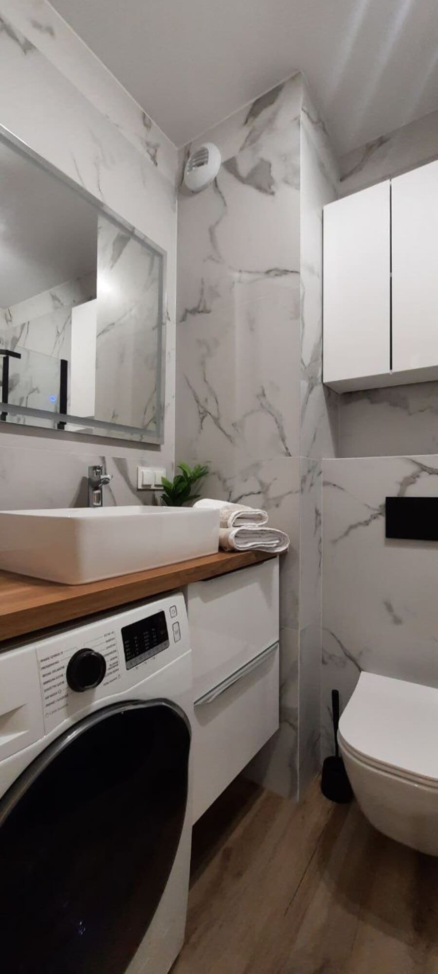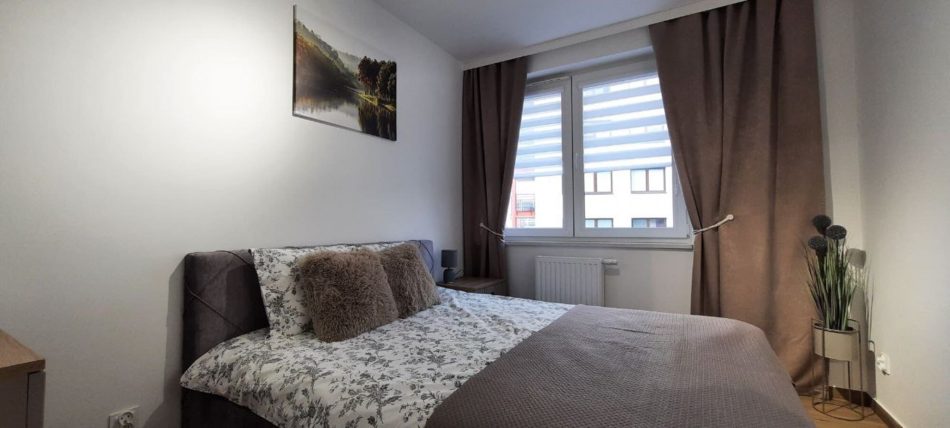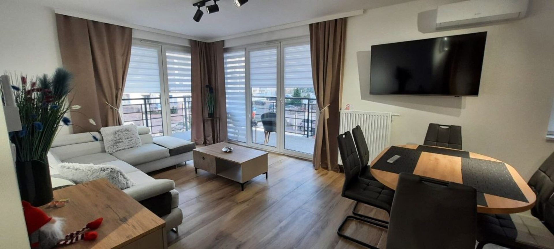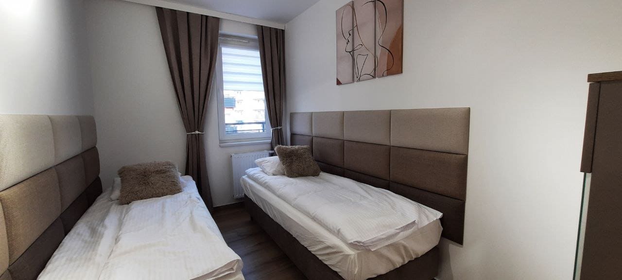 Элегантность и простор объединяются в этой квартире площадью 61 м², создавая идеальную обстановку для отдыха. В первой спальне стоит большая двуспальная кровать (160x200 см), а во второй - две удобные односпальные кровати (90x200 см). Две ванные комнаты, одна из которых с душем, обеспечивают комфортное пребывание для больших групп. Стильная гостиная с диваном-кроватью и просторный балкон - идеальные места для отдыха после насыщенного впечатлениями дня в Кракове. Современные удобства, включая кондиционер и кофеварку, дополняют впечатления.